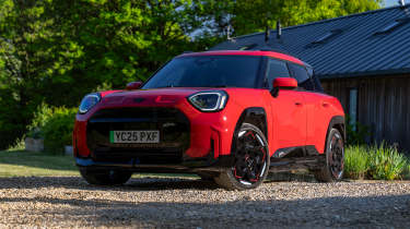 With the JCW treatment it becomes a sharpened up, 254bhp EV with genuine hot hatch pace, borrowing its innards from Mini’s three-door electric JCW. That’s a car that shows flashes of fun and entertainment in the right conditions, but is compromised by a relentlessly firm ride and a tetchy, hyper alert character that can become wearing. Not what you want from a daily performance car, but does the Aceman use the same ingredients to better effect?