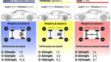 Alpine A110 v Porsche 718 Cayman S v Audi TT RS – Supertest review - The data